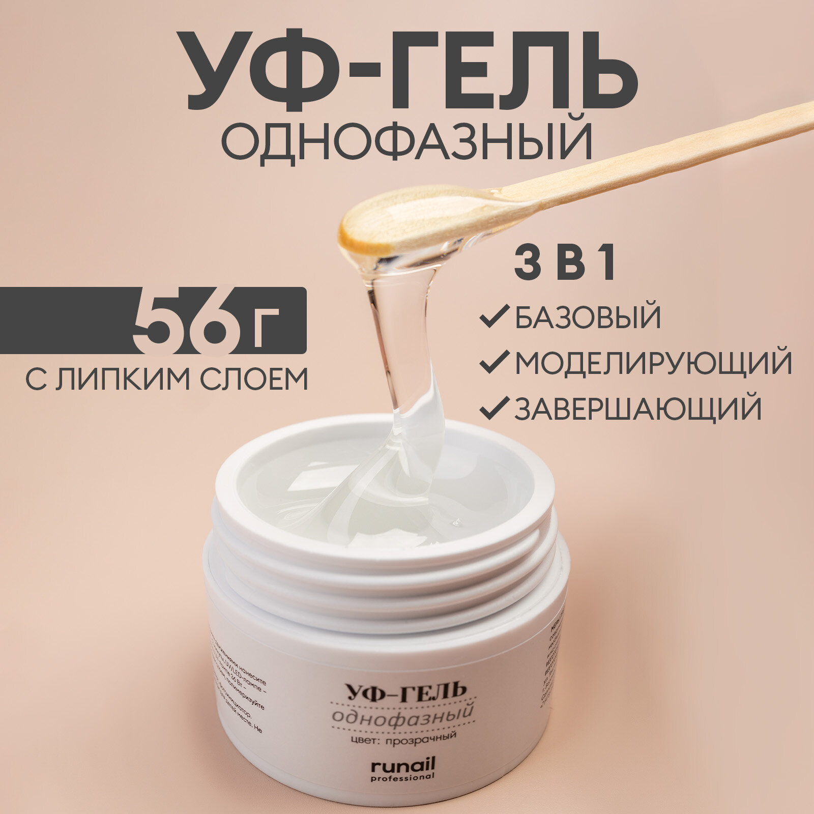 Однофазный УФ-гель/гель для моделирования и наращивания/однофазный гель для маникюра прозрачный, 56 г информация: