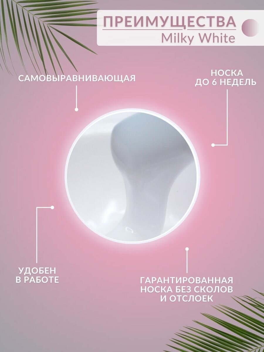 10 цен на УФ гель для наращивания ногтей Milky White молочно-белый для маникюра Irisk, 50 мл.