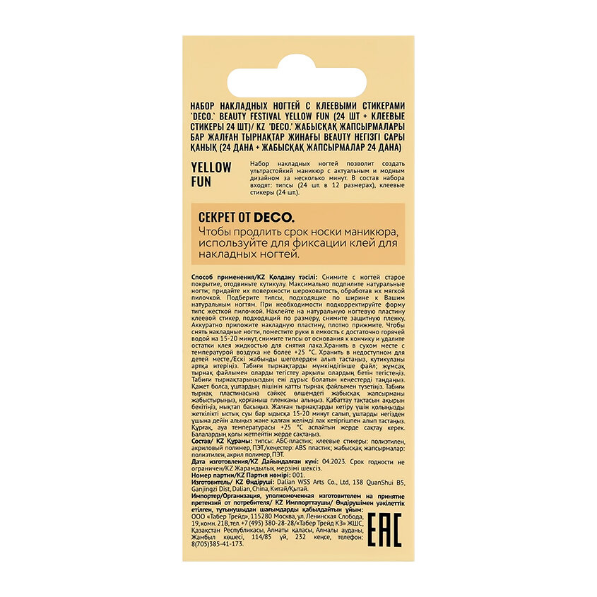 10 цен на Набор накладных ногтей с клеевыми стикерами DECO. BEAUTY festival yellow fun (24 шт + клеевые стикеры 24 шт)