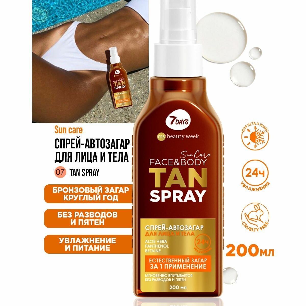 Автозагар для лица и тела 7DAYS SUN CARE спрей для загара TAN SPRAY информация: