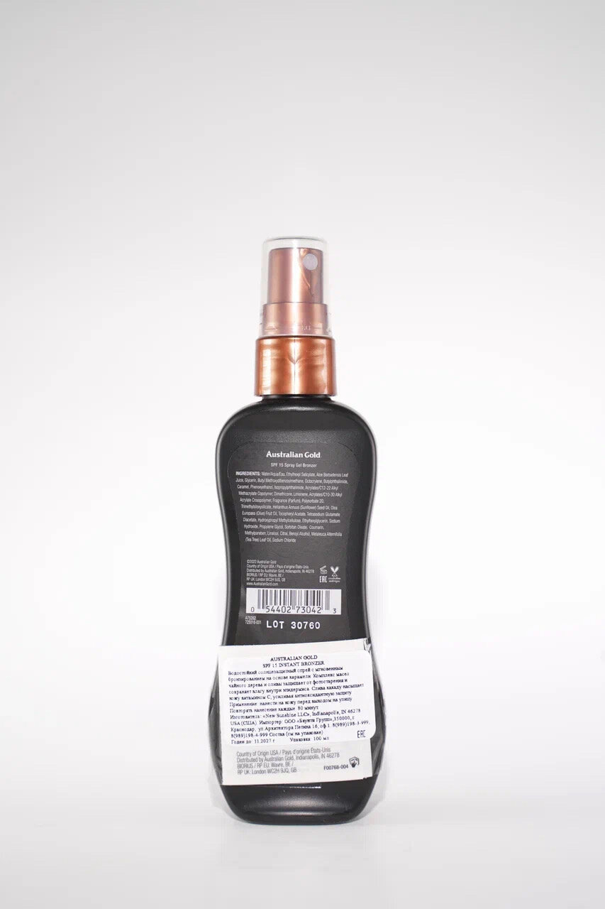 10 цен на Australian Gold Instant Bronzer Spray Gel Sunscreen SPF15 (TRAVEL SIZE:100мл) Солнцезащитный спрей-гель