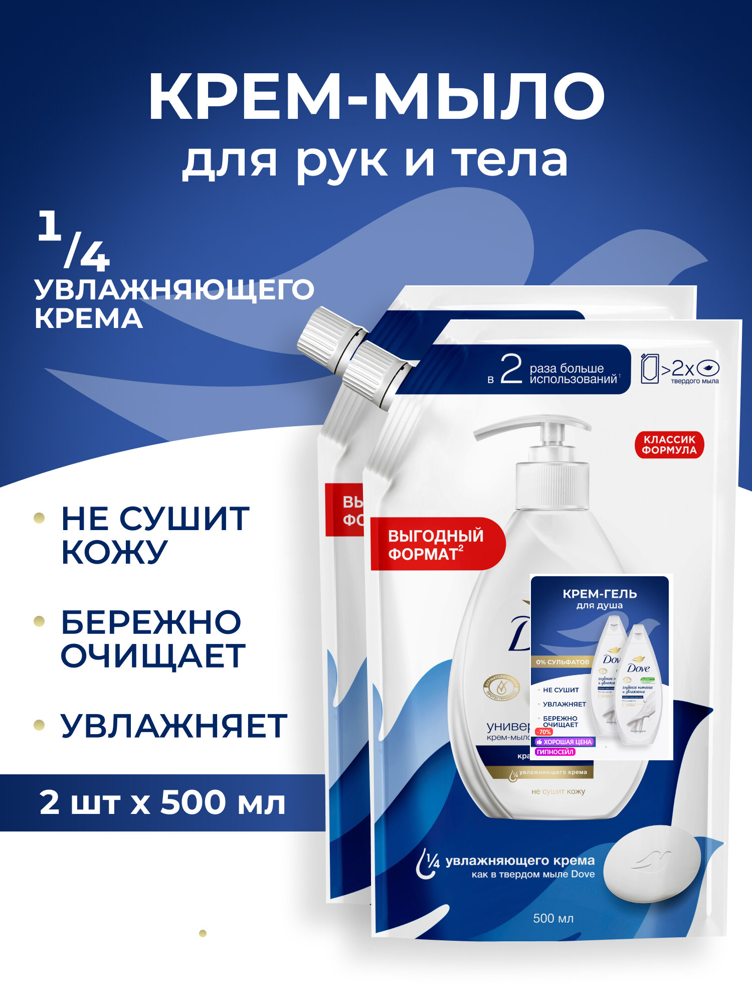 10 цен на Жидкое крем-мыло Dove красота и уход с 1/4 увлажняющего крема, не сушит кожу 500 мл ( 2 шт)
