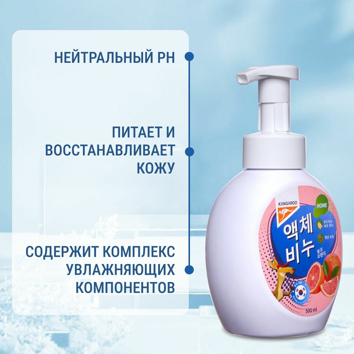 Корейское жидкое мыло пенка с ароматом розового апельсина, 500 мл. Kangaroo Home информация: