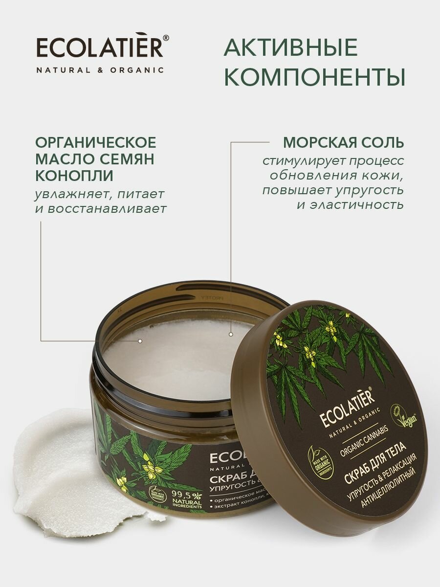 ECOLATIER / Антицеллюлитный скраб для тела Упругость и Релаксация Серия ORGANIC CANNABIS, 300 г информация: