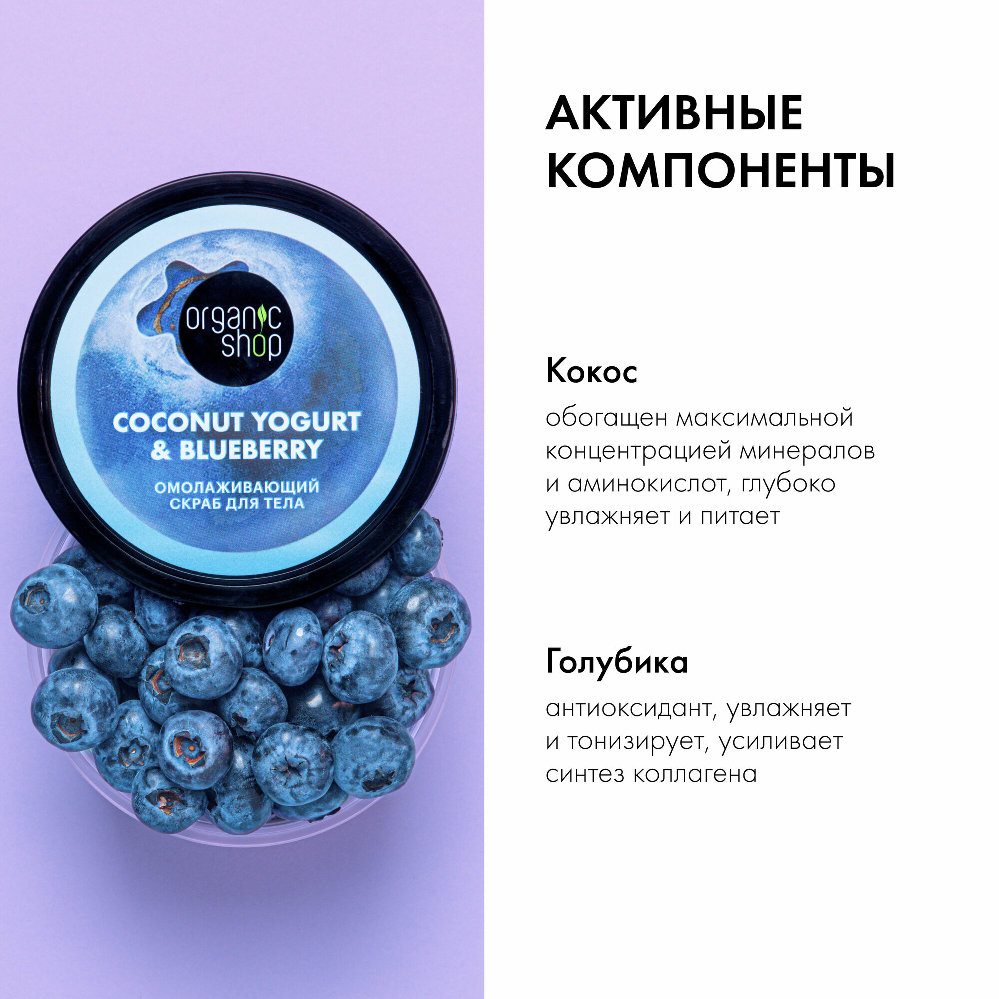Скраб для тела Organic Shop, Coconut yogurt с Экстрактом голубики Омолаживающий, 250 мл