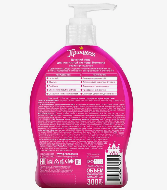 Гель Принцесса для интимной гигиены Неженка, 300 мл. информация:
