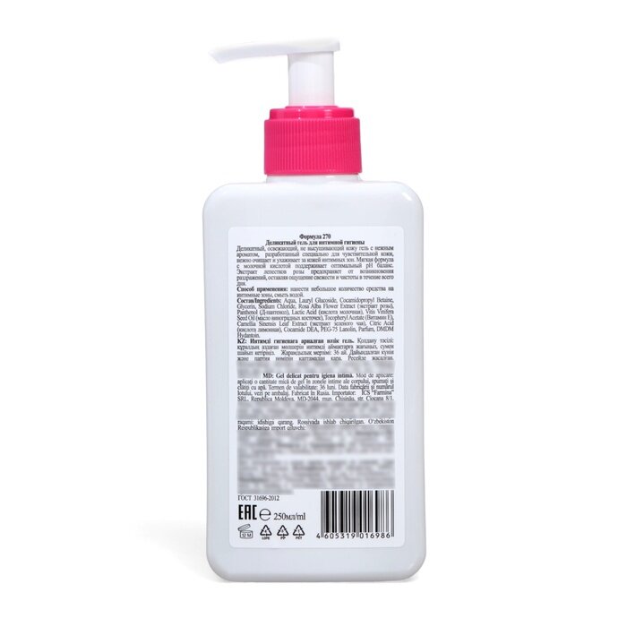 | Дополнительная информация | способ применения: нанести небольшое количество средства на интимные зоны, смыть водой |