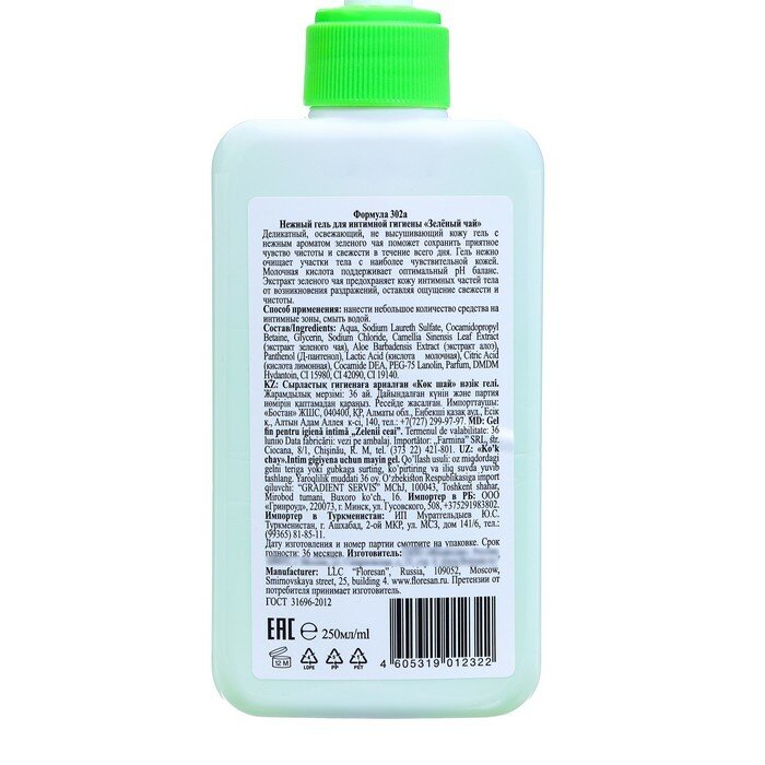 10 цен на Нежный гель для интимной гигиены Floresan "Зеленый чай" серия "Фруктовая Симфония", 250 мл