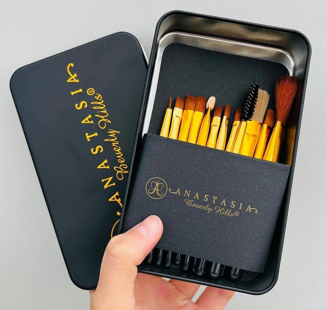 10 цен на Набор кистей для макияжа, 12 предметов, в железном контейнере.