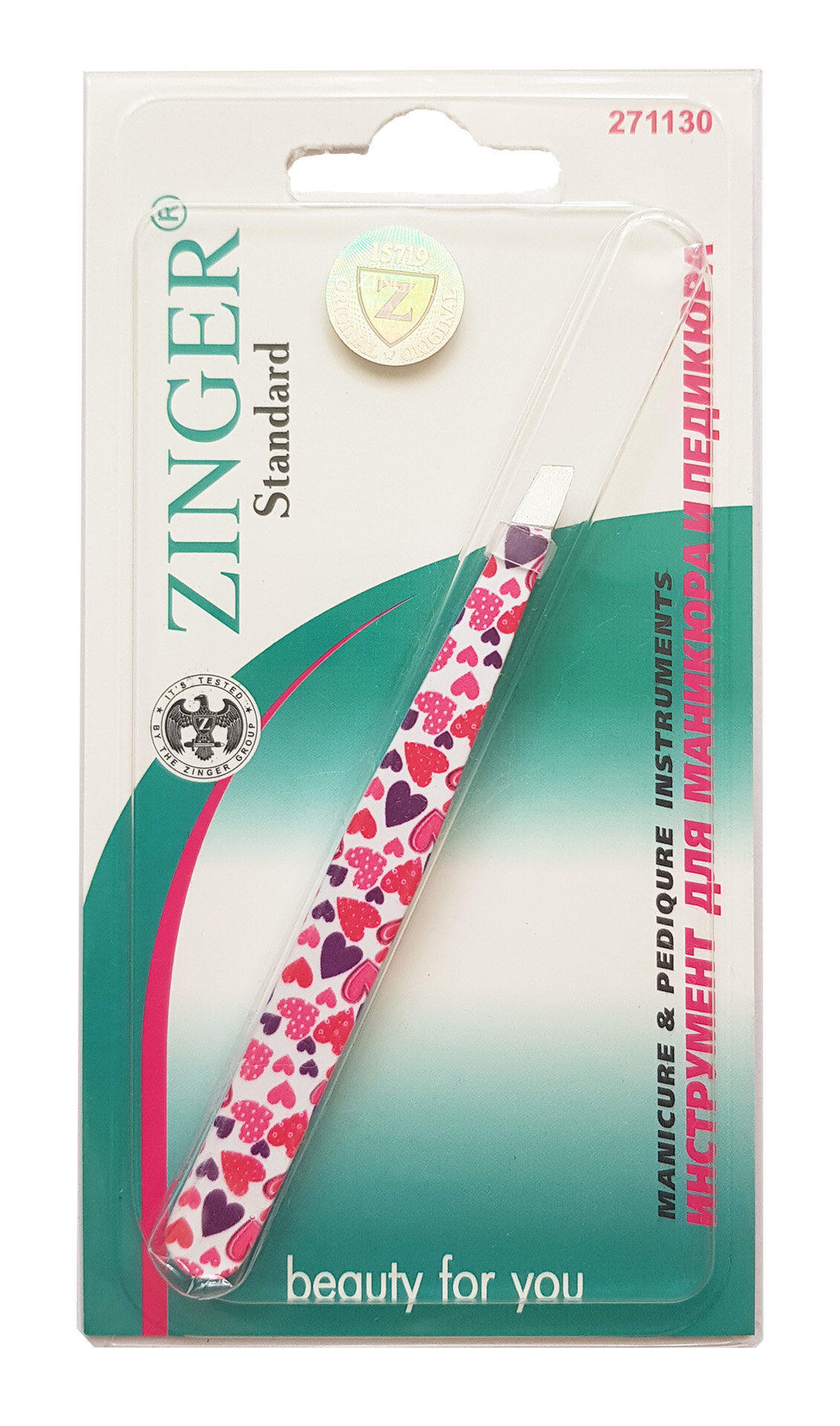 Пинцет скошенный для бровей Zinger 86022 #6 с сердечками информация: