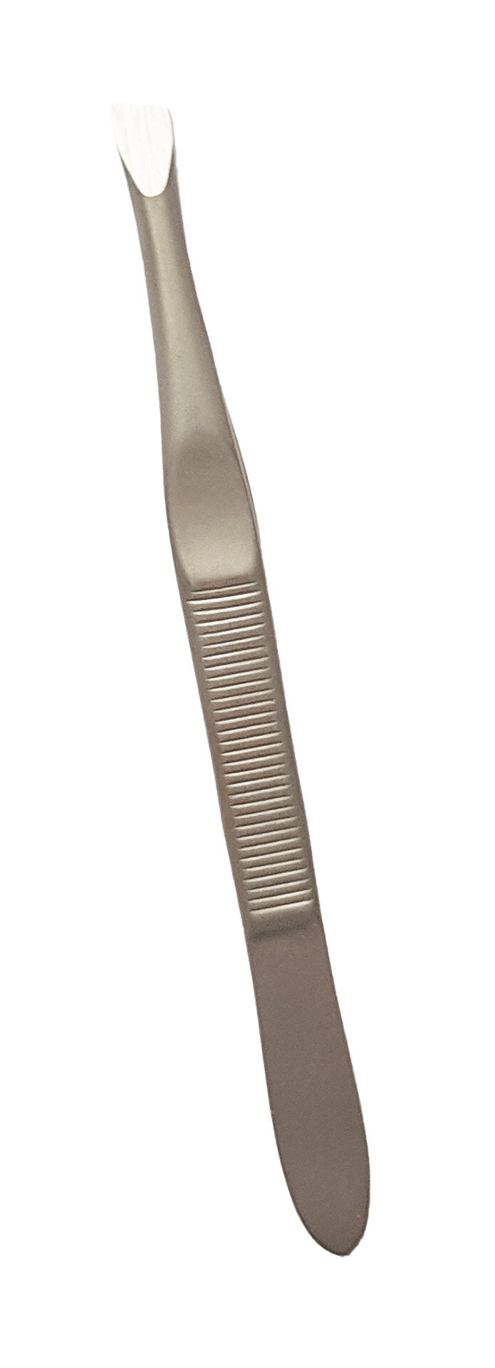Пинцет для бровей скошенный, с выемкой для пальцев, с ручной заточкой Zinger B-166 FD SH, серебристый блестящий информация: