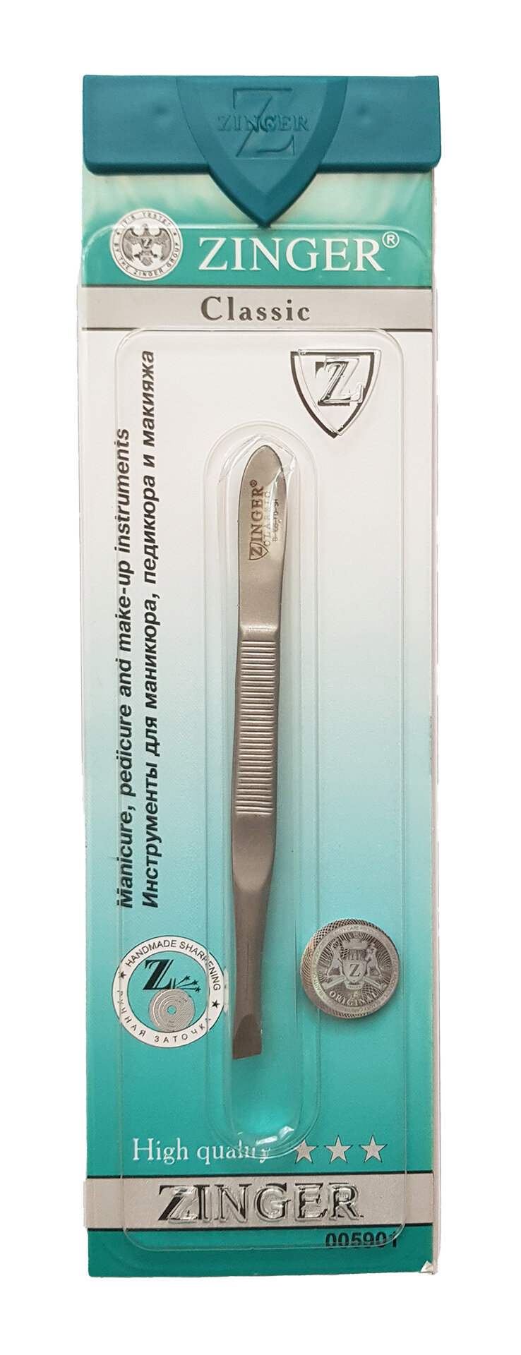 10 цен на Пинцет для бровей скошенный, с выемкой для пальцев, с ручной заточкой Zinger B-166 FD SH, серебристый блестящий