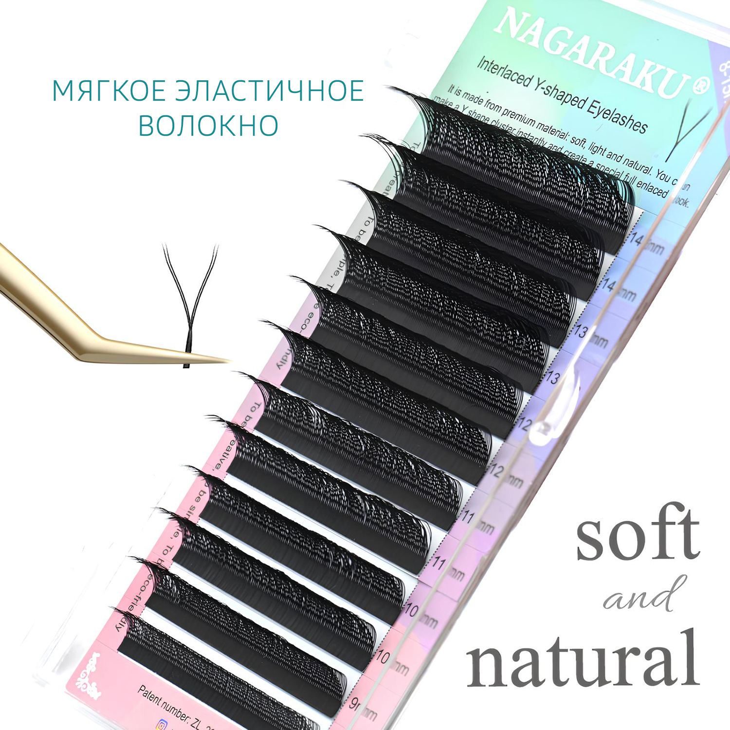 Отзывы на Ресницы для наращивания Nagaraku готовые пучки 2D, 0,07 мм, изгиб D ,mix 8-14 мм, YY форма