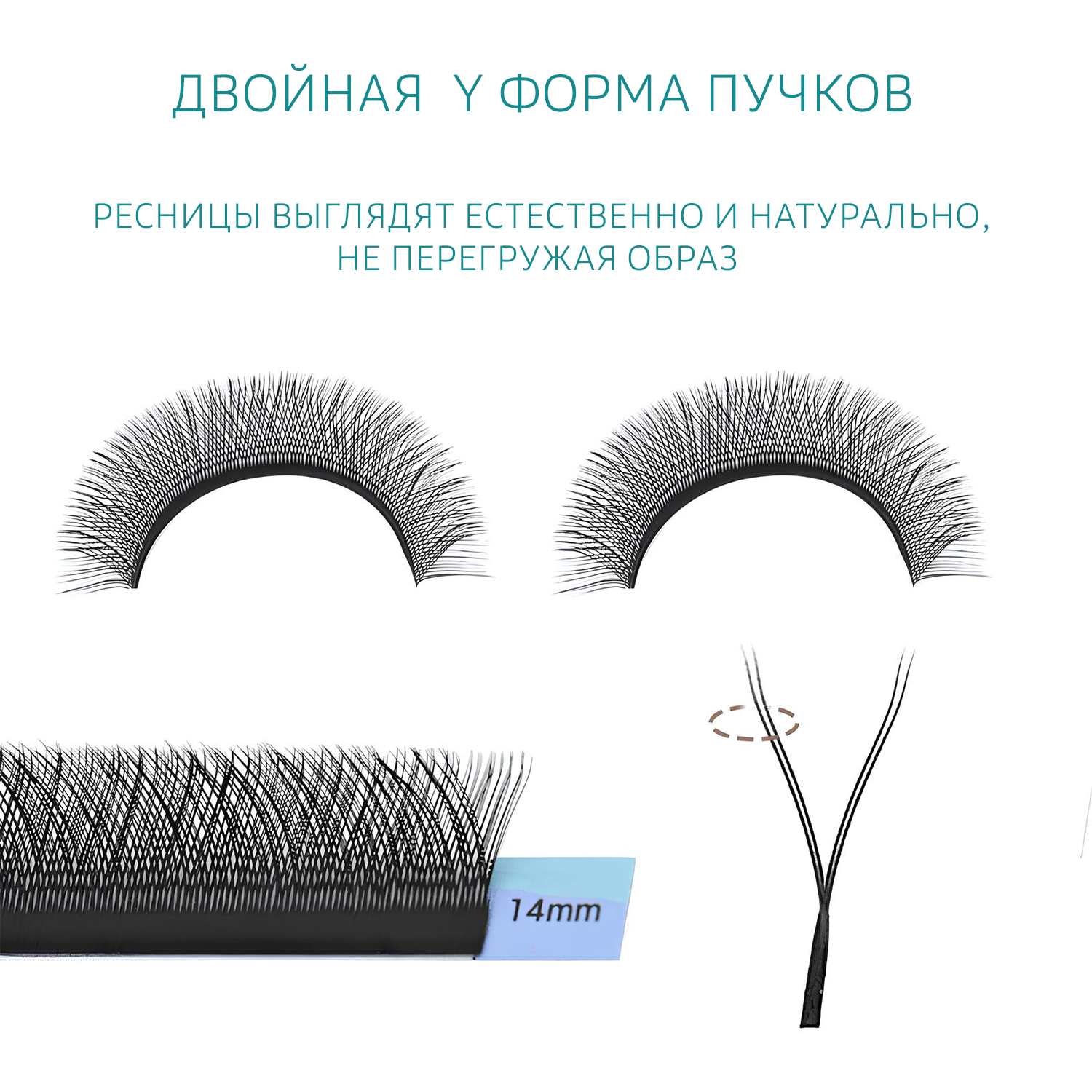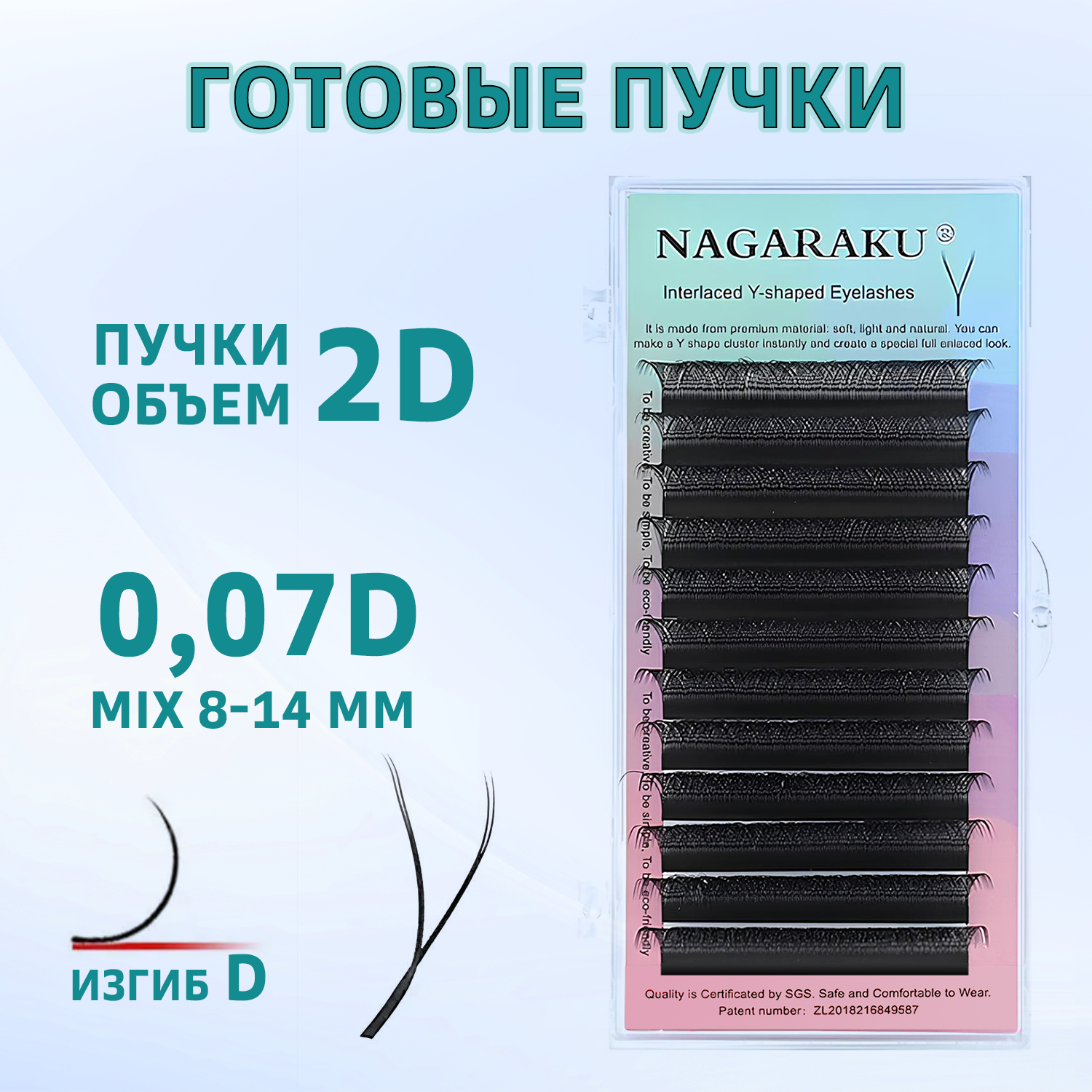 Ресницы для наращивания Nagaraku готовые пучки 2D, 0,07 мм, изгиб D ,mix 8-14 мм, YY форма информация: