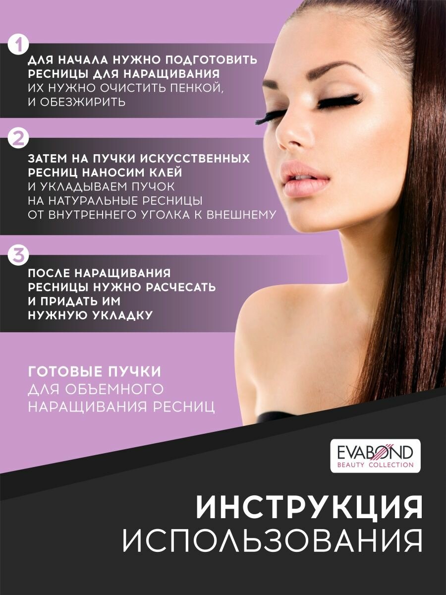 Ресницы для наращивания EvaBond безузелковые пучки 6 линий 8-12 мм, 3D, C-изгиб, 3 волоска, 0.07 мм, черный информация:
