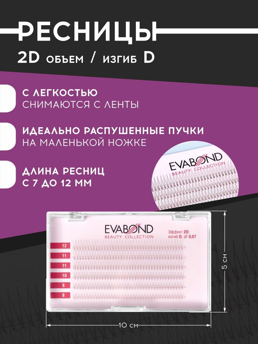 Ресницы для наращивания EvaBond безузелковые пучки 6 линий 8-12 мм, 2D, D-изгиб, 2 волоска, 0.07 мм, черный информация: