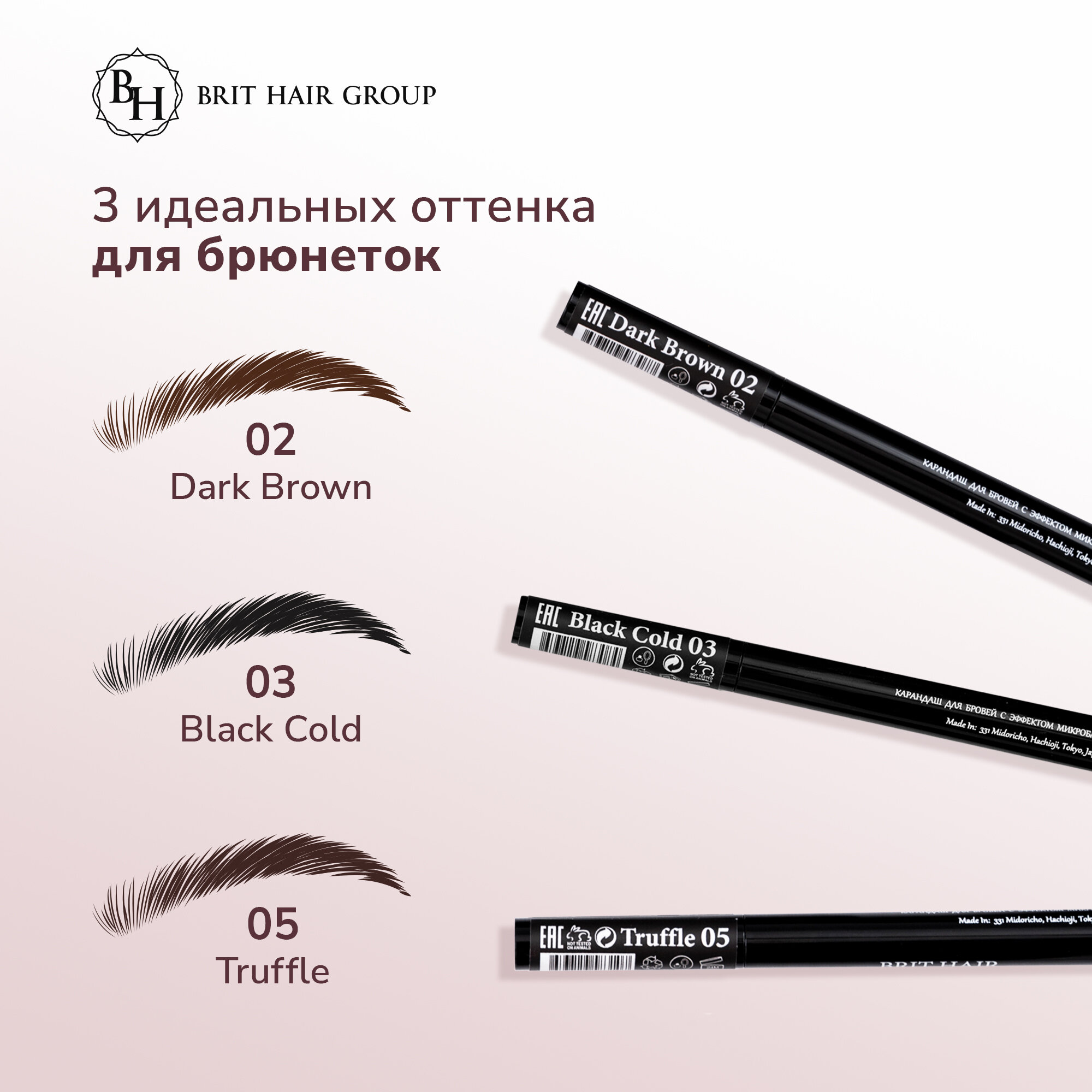 Карандаш-маркер для бровей Brit Hair Group эффект микроблейдинга Fashion Liner Brow, Fine Sketch, Япония, тон 03 Black Cold, Черный, Водостойкий 550 ₽