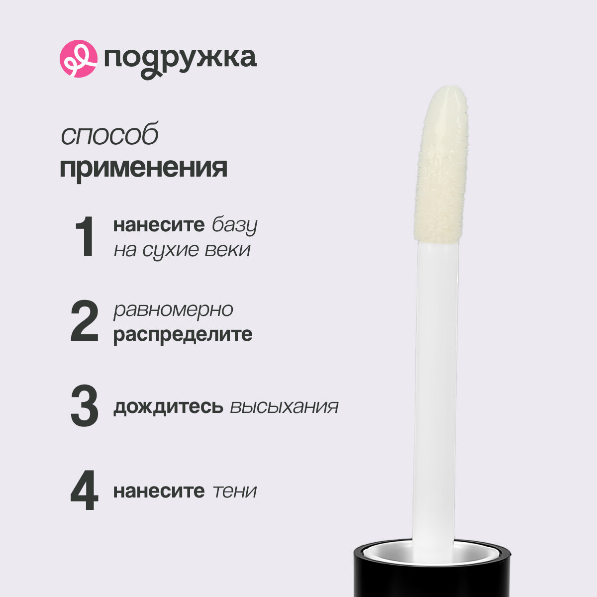 | Способ применения | нанесите аппликатором небольшое количество базы на веки и равномерно распределите. Дождитесь высыхания и наносите тени |