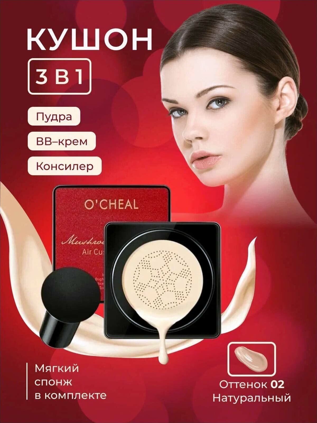 10 цен на Тональный крем кушон O'CHEAL Mushroon Spring Air Cushion Frost, тон 02 натуральный