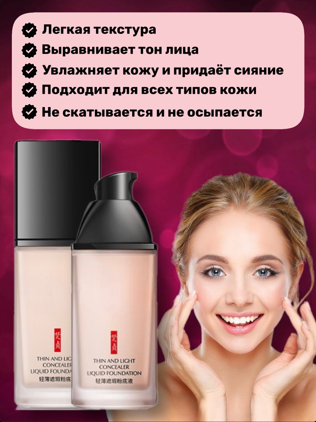 | Особенности | антивозрастное / без эффекта маски / не тестируется на животных / подходит для ежедневного использования / с дозатором |