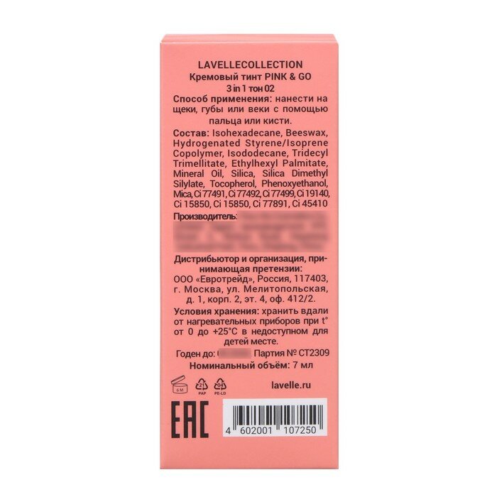 Кремовый тинт LavelleCollection Pink & Go 3 в 1, тон 02 10368511 информация: