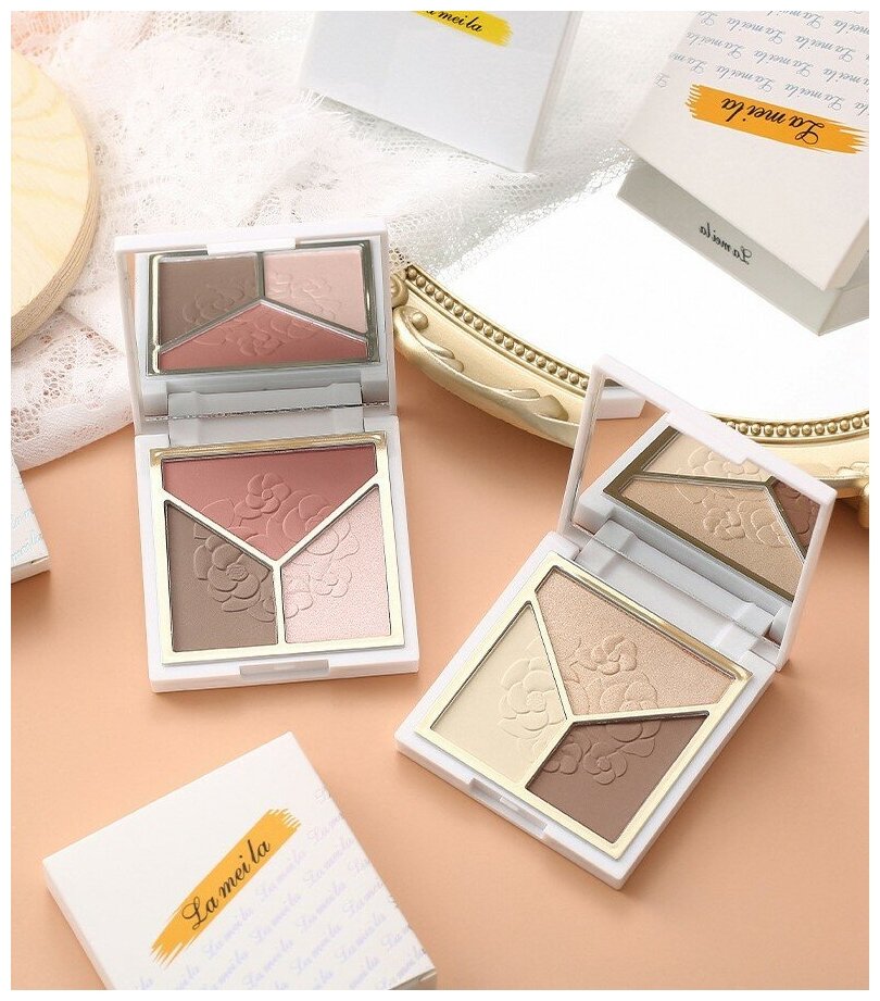 10 цен на Палетка 3 в 1 для макияжа (хайлайтер, румяна, контуринг), тон 02