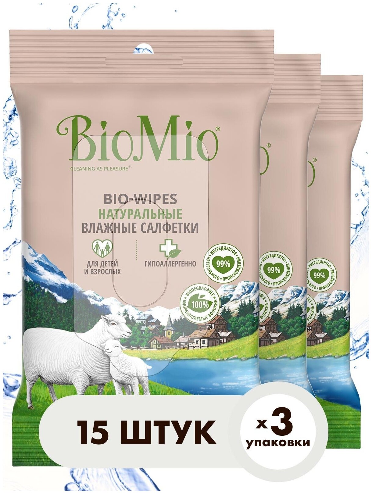 Натуральные влажные салфетки BioMio Bio-Wipes с экстрактом хлопка для детей и взрослых, 15шт х 3 шт информация: