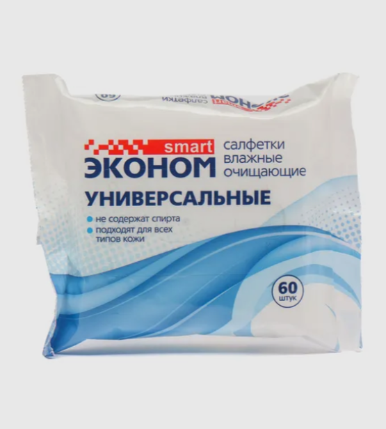 Влажные салфетки Эконом Smart очищающие, универсальные, 60 шт. информация: