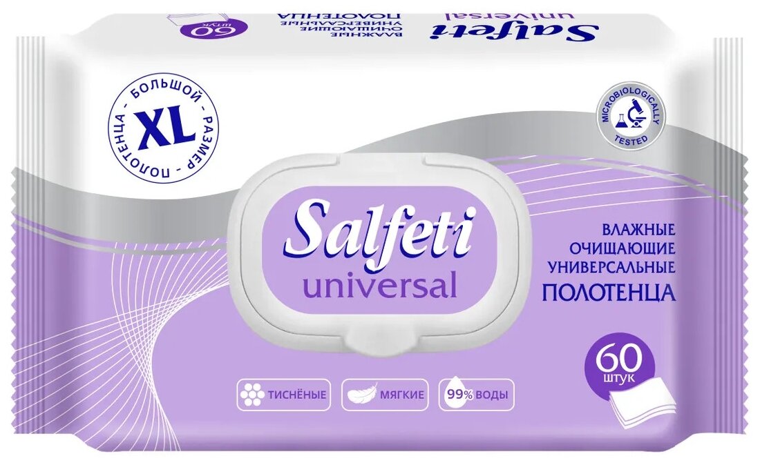 Отзывы на Полотенца влажные Salfeti Universal, 60шт., очищающие, универсальные, с пластиковым клапаном