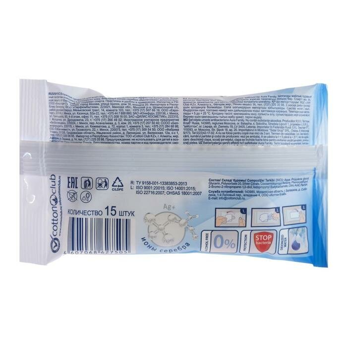 10 цен на Влажные салфетки Aura Family, c антибактериальным эффектом, 15 шт., 6 штук