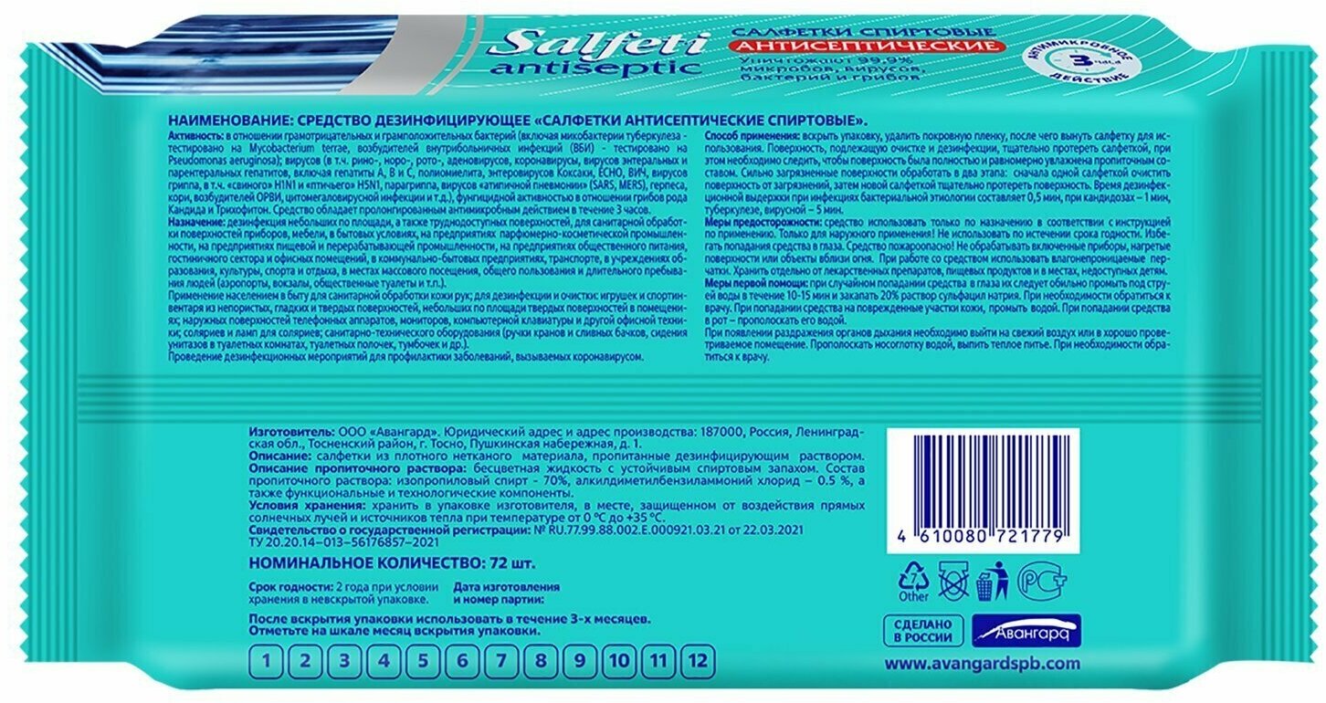 Салфетки влажные Salfeti антисептические, спиртовые, 72 шт (72177) информация: