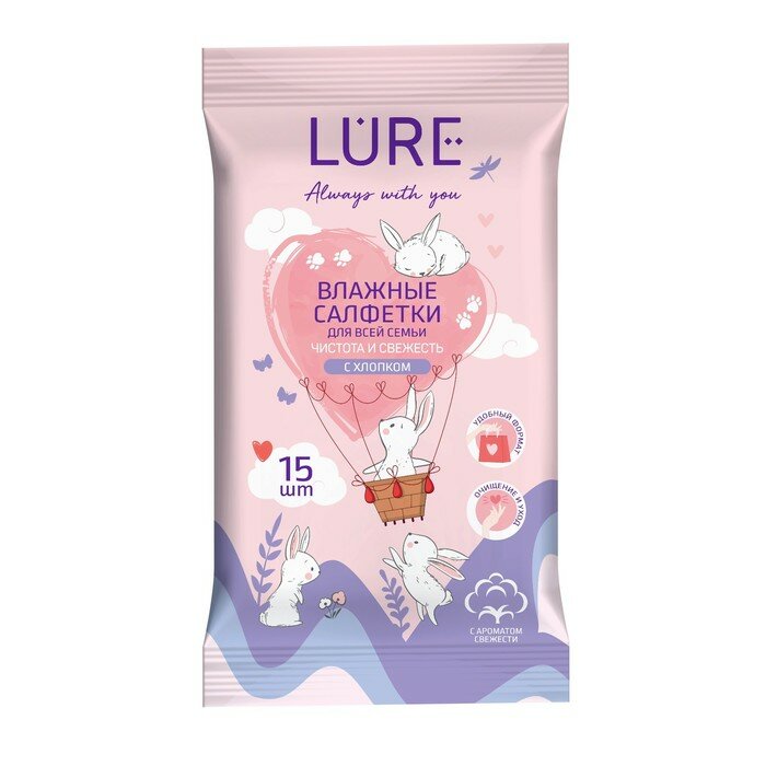 Влажные салфетки Lure для всей семьи, 15 шт. информация: