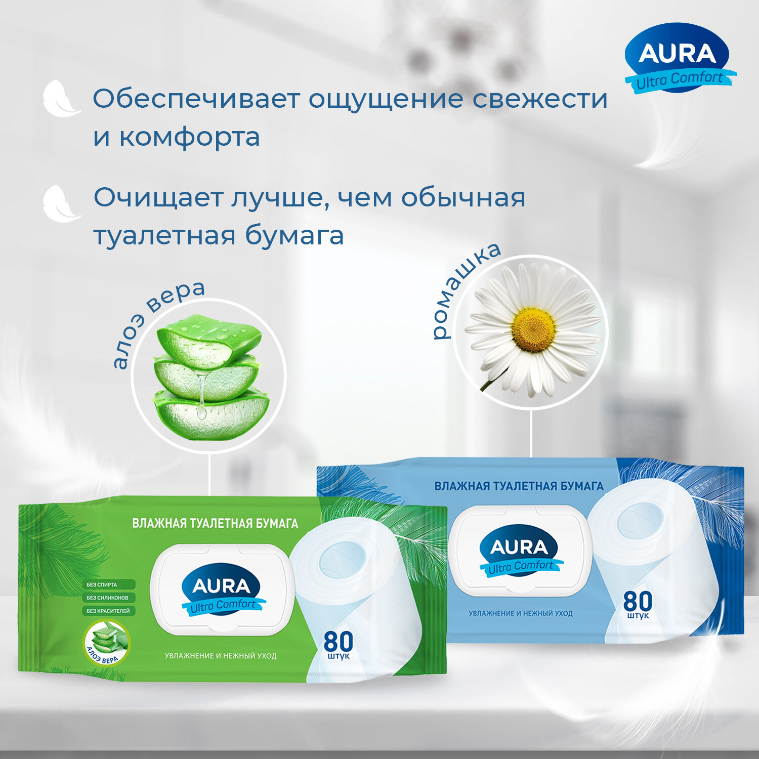 10 цен на Влажная туалетная бумага алоэ и ромашка 480 шт (80 шт х 6), AURA ULTRA COMFORT