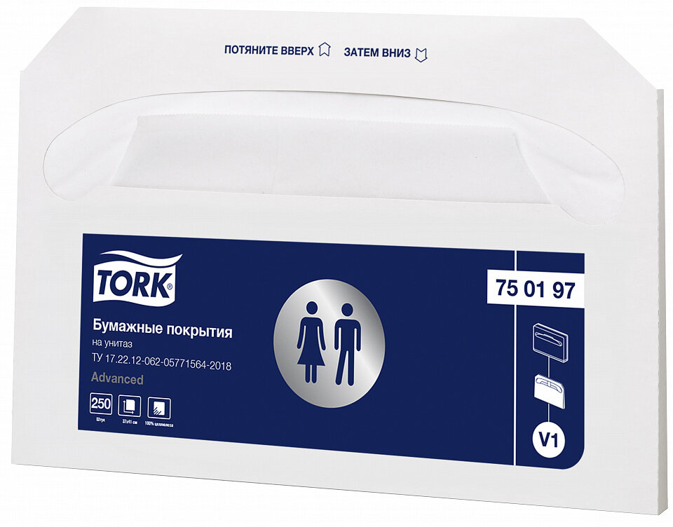 Покрытие бумажное 250 шт/уп, система V1, ADVANCED, для сиденья на унитаз белое, TORK, 1 пачка, арт. 750197 (750160) информация: