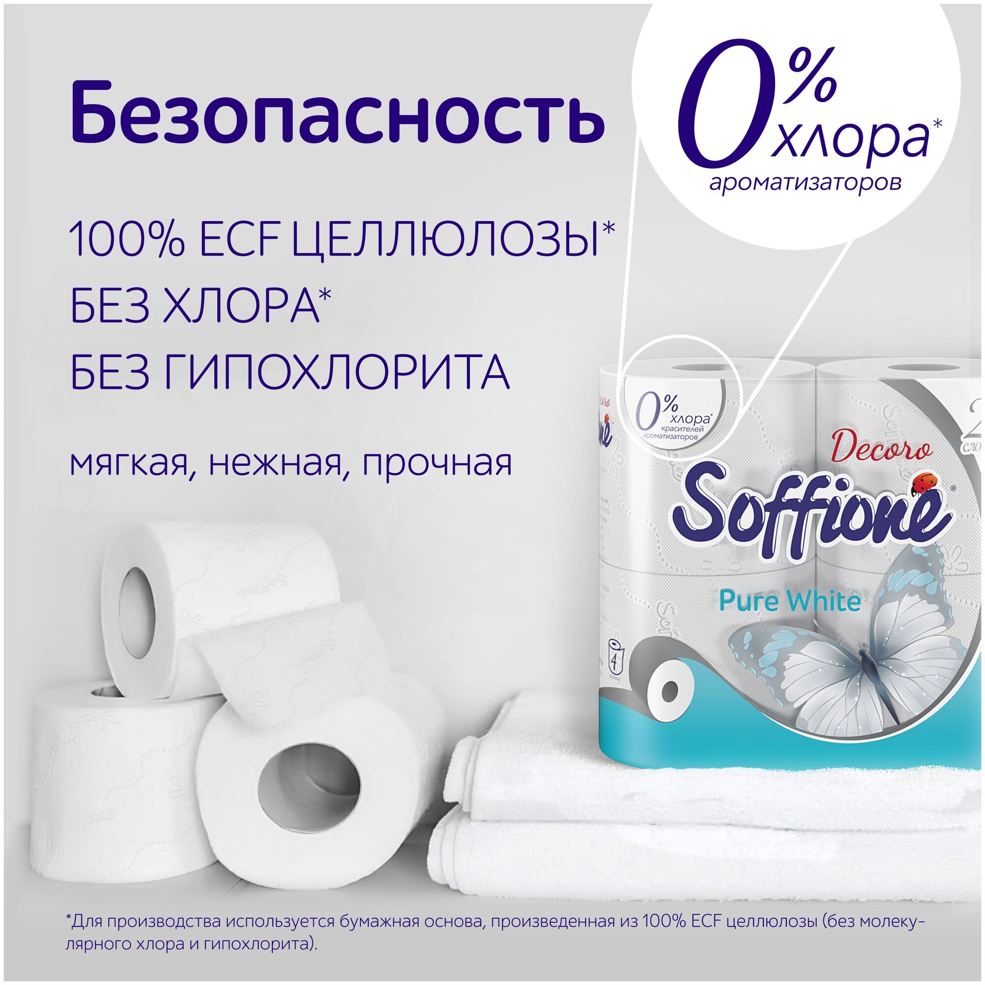 Туалетная бумага Soffione Pure White белая двухслойная 4 рул. информация: