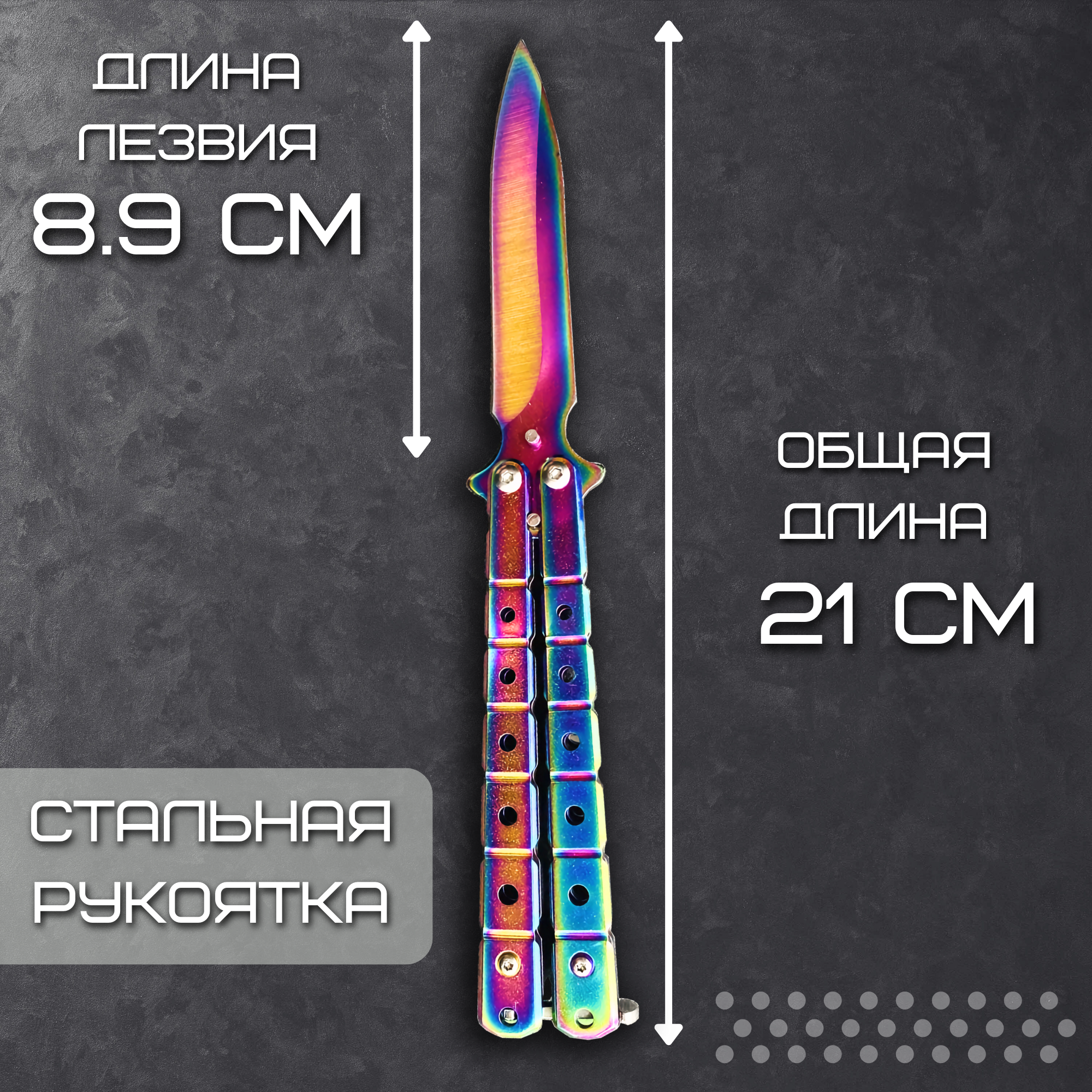 Нож бабочка, балисонг складной градиент , длина лезвия 8,9 см. информация:
