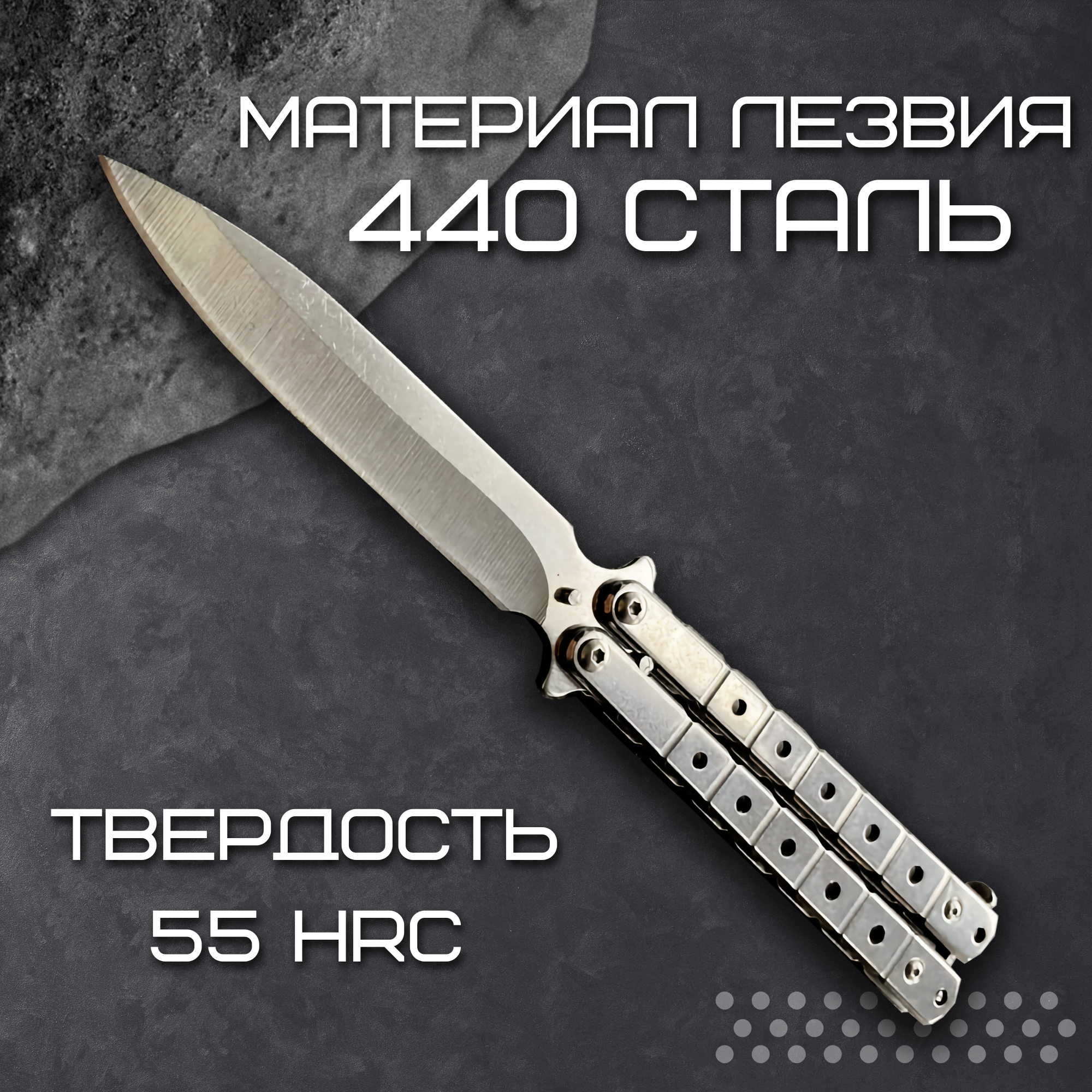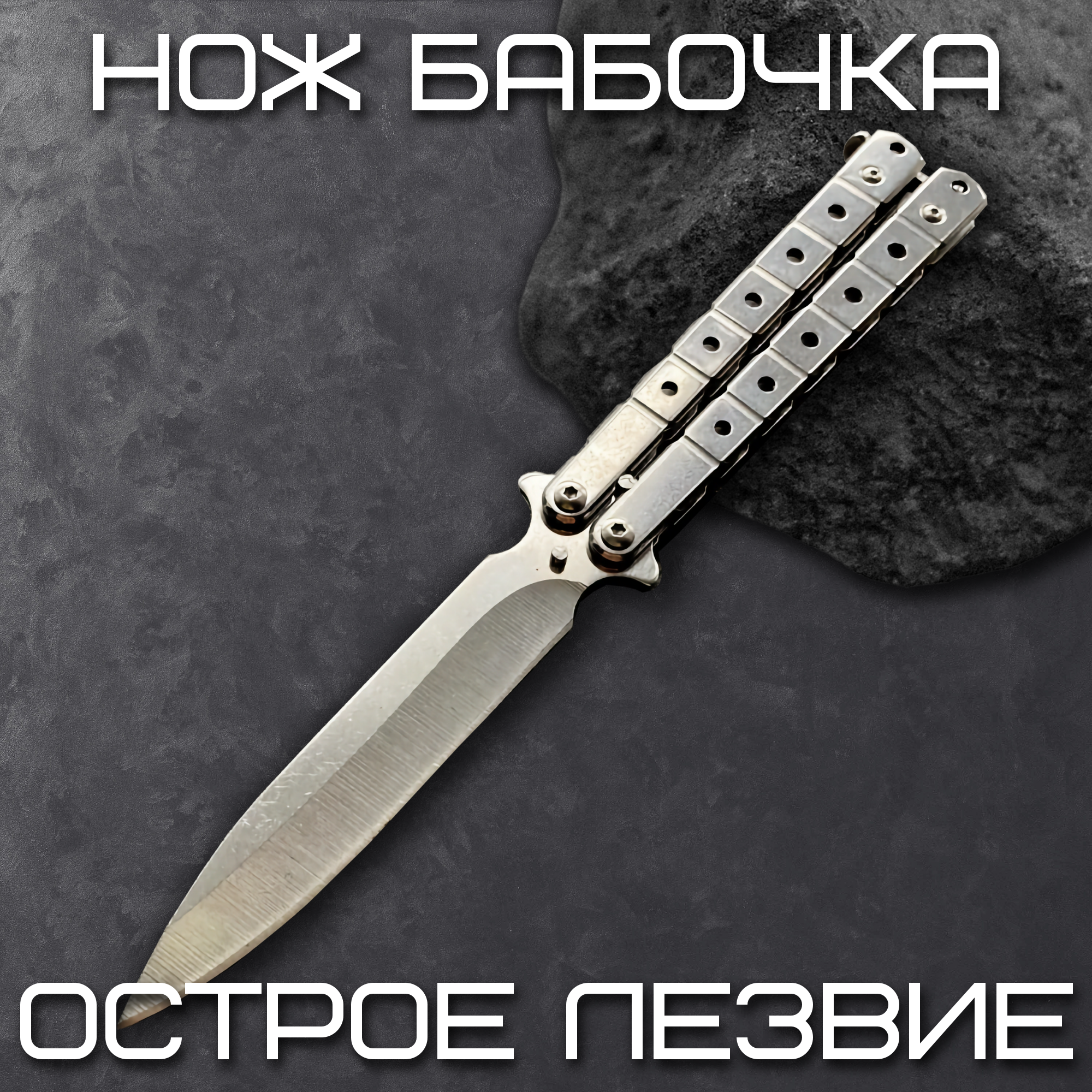 Отзывы на Нож бабочка, балисонг складной серебристый, длина лезвия 8,9 см.