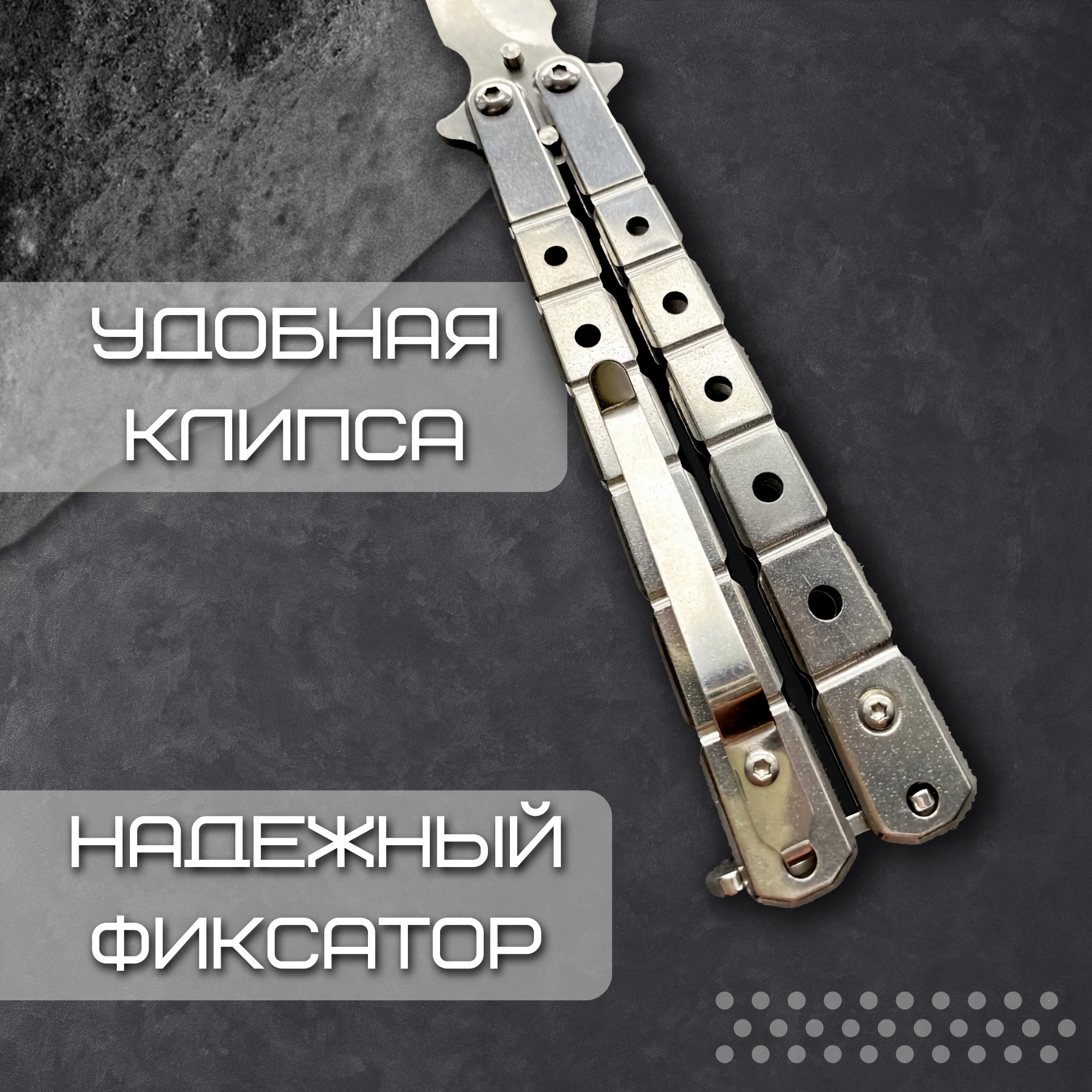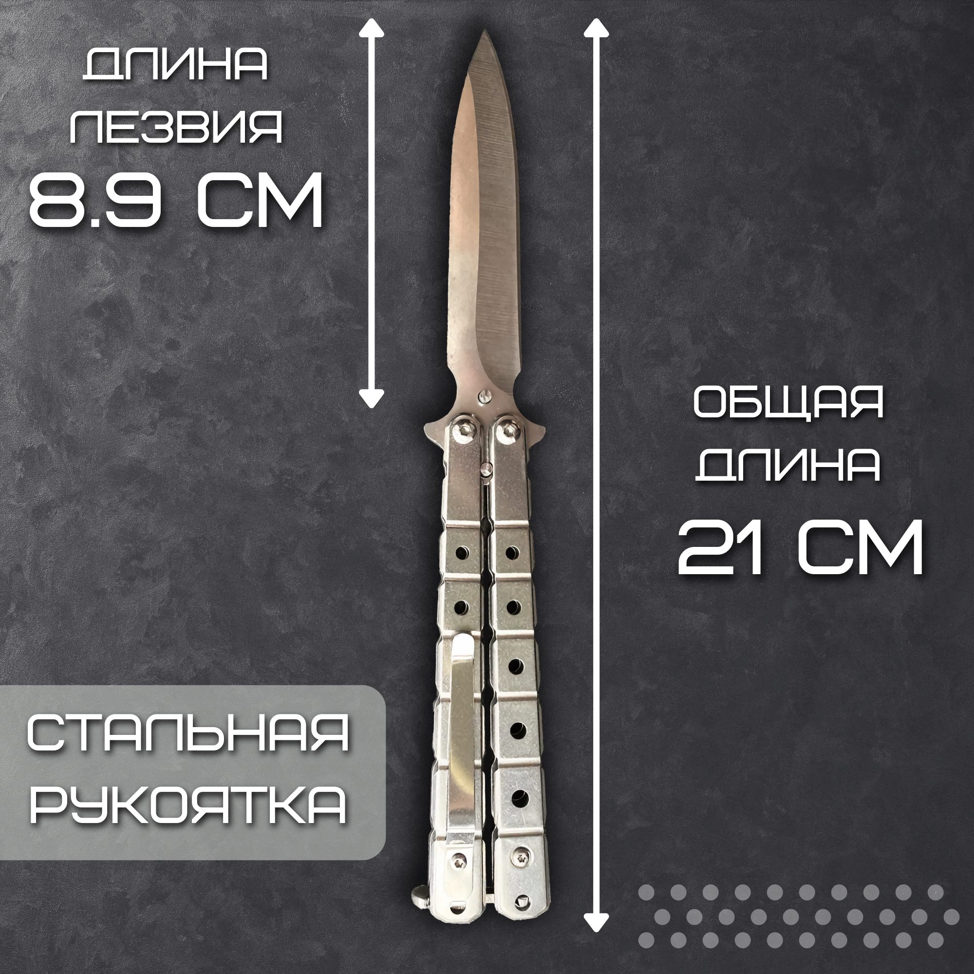 Нож бабочка, балисонг складной серебристый, длина лезвия 8,9 см. информация: