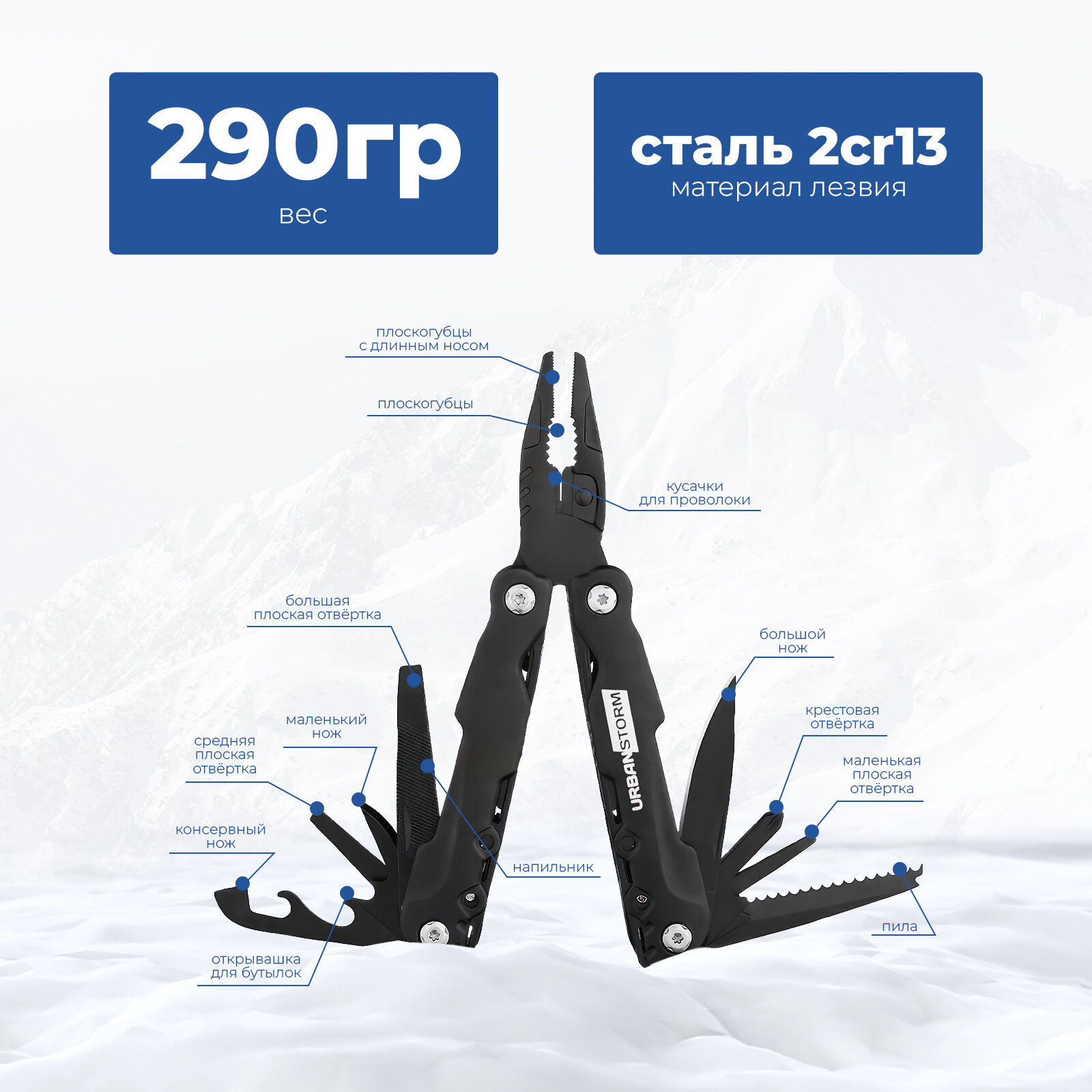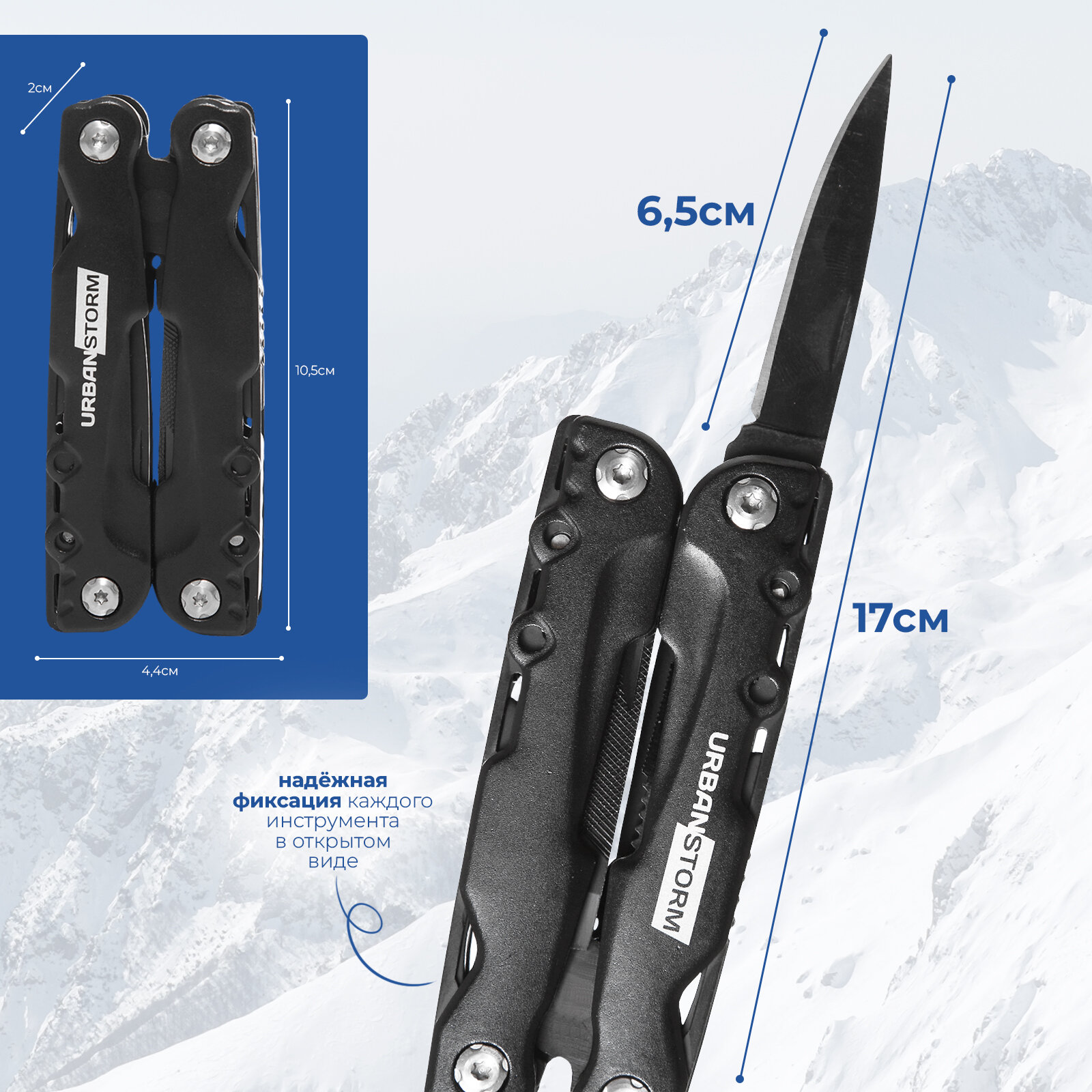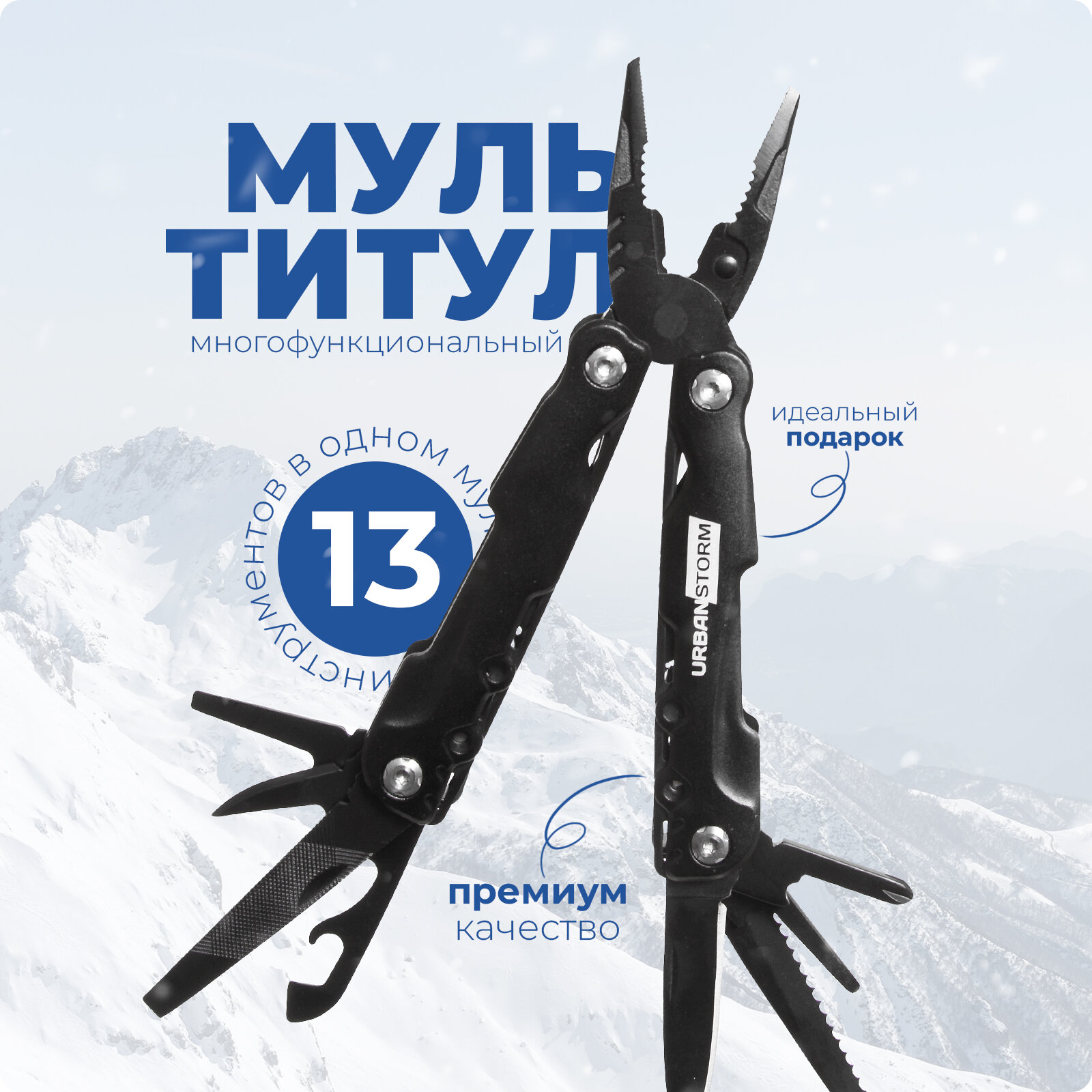 10 цен на Мультитул 13 в 1 (черный) UrbanStorm с чехлом, сталь 2cr13, многофункциональный, для авто, велосипеда, путешествий, походов, рыбалки