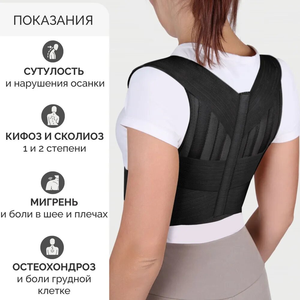 | Дополнительная информация | Корректор осанки используется при боли и дискомфорт в различных участках позвоночного столба, сколиоз, кифоз грудного отдела, сутулость, радикулит, поясничный лордоз, профилактика и лечение межпозвонковых грыж. Противопоказания: аллергическая реакция на материалы, беременность, легочная и сердечная недостаточность, ссадины и высыпания на тех участках кожи, с которыми корсет может соприкасаться. Необходима консультация с врачом |