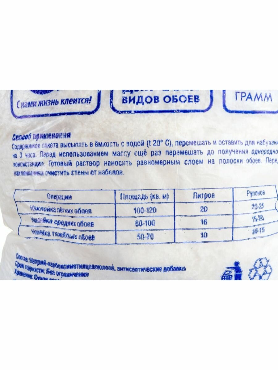 Клей обойный КМЦ 1000г информация: