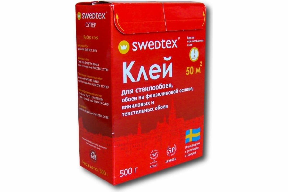 Swedtex Клей сухой универсальный супер Для стеклообоев, флизелиновых и других видов тяжёлых обоев, 500 г / до 65 м. кв., PS-050 информация: