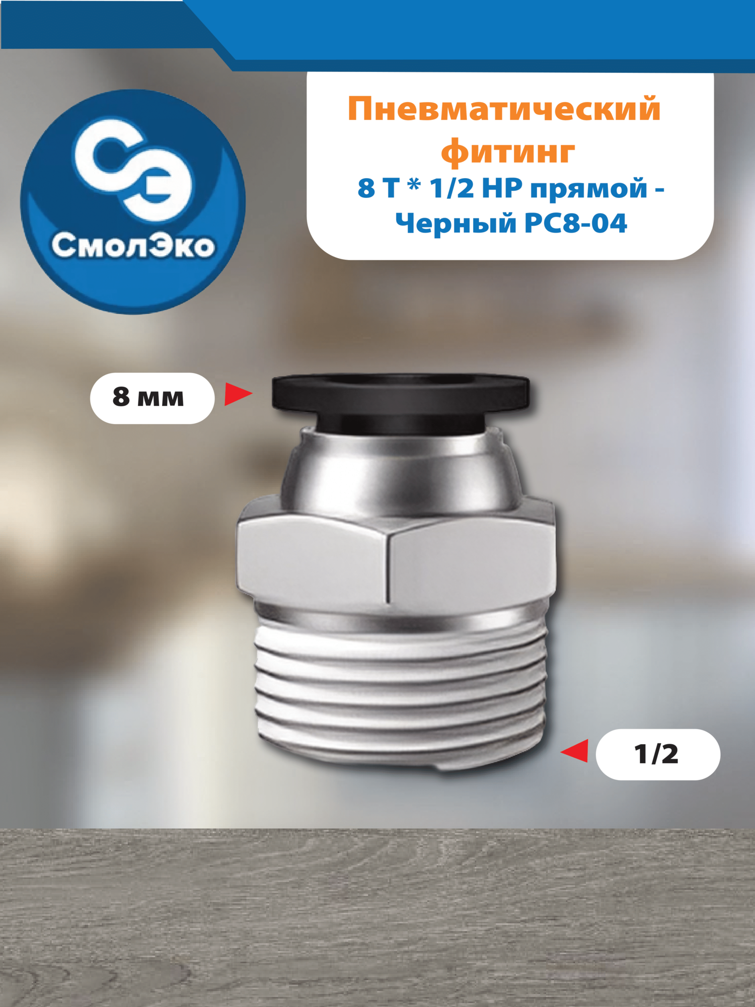 Пневматический фитинг 8 Т * 1/2 НР прямой - Черный PC8-04 информация: