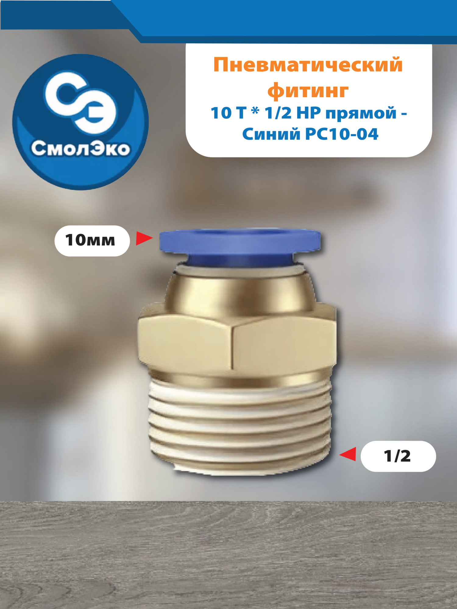 Пневматический фитинг 10 Т * 1/2 НР прямой - Синий PC10-04 информация:
