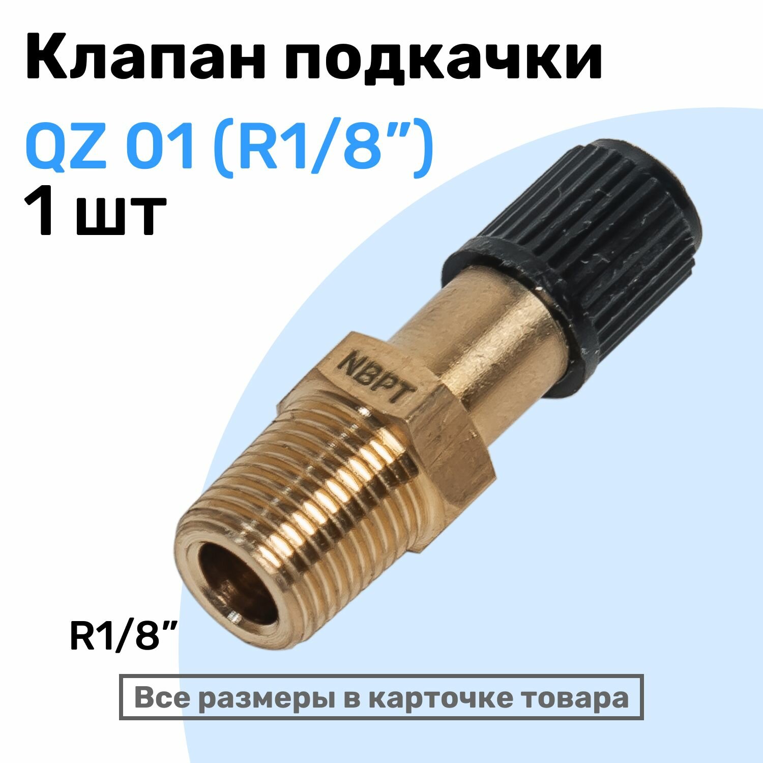 Клапан подкачки QZ 01 - R1/8", Ниппель с золотником, штуцер для подкачки, NBPT информация: