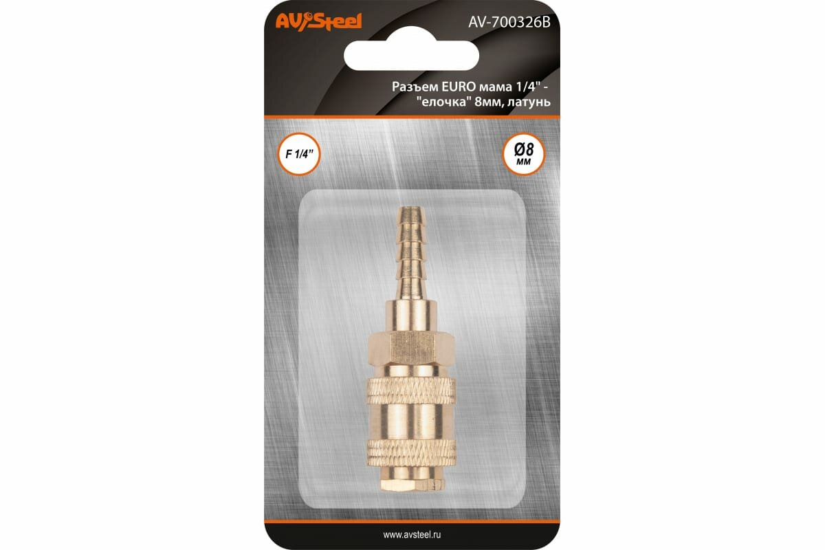 Разъем EURO мама 1/4" - елочка 8мм, латунь, в блистере "AV Steel", AV-700326B информация: