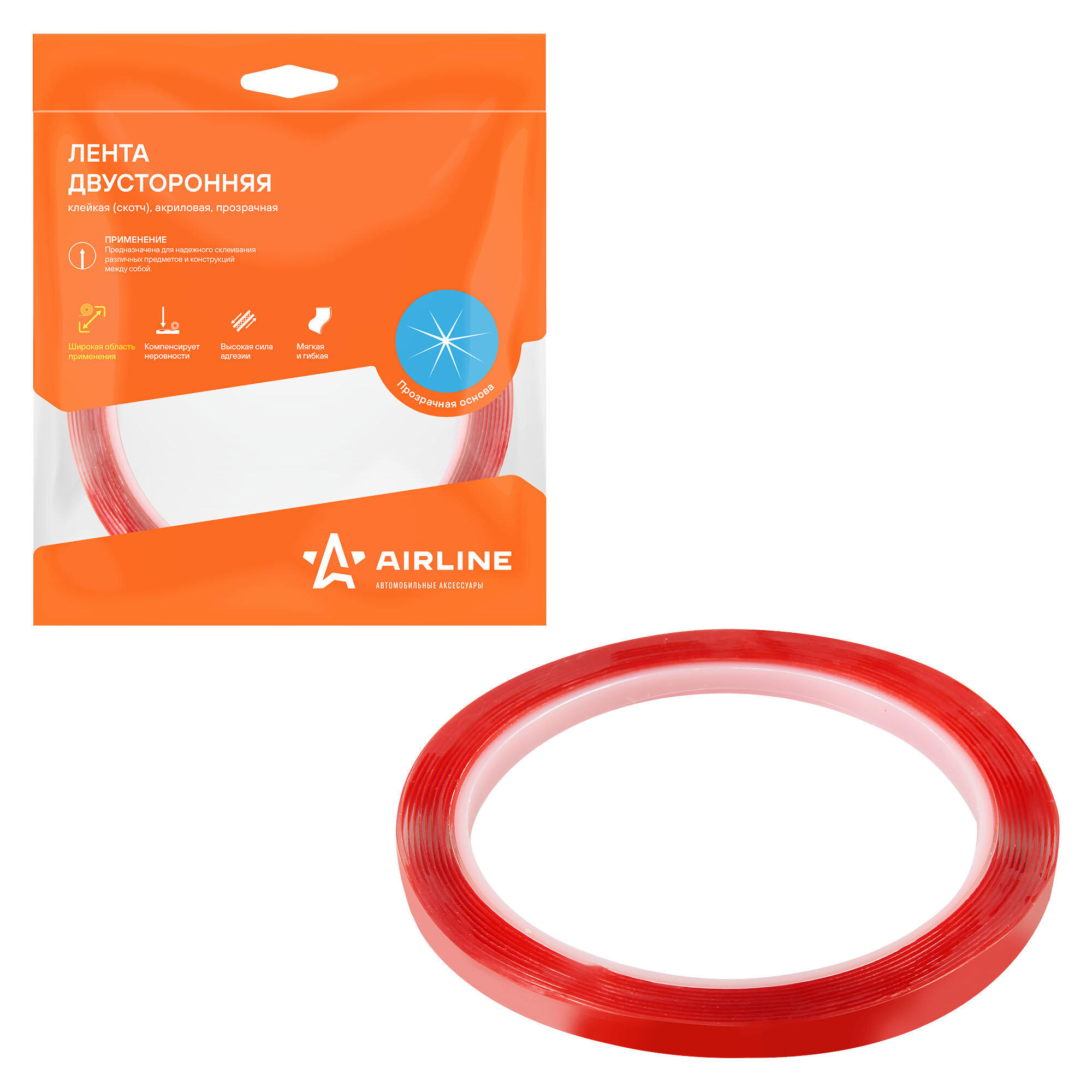 AIRLINE Airline "Лента двусторонняя клейкая (скотч), 6 мм*3 м, акриловая, прозрачная (ADS-A-04)