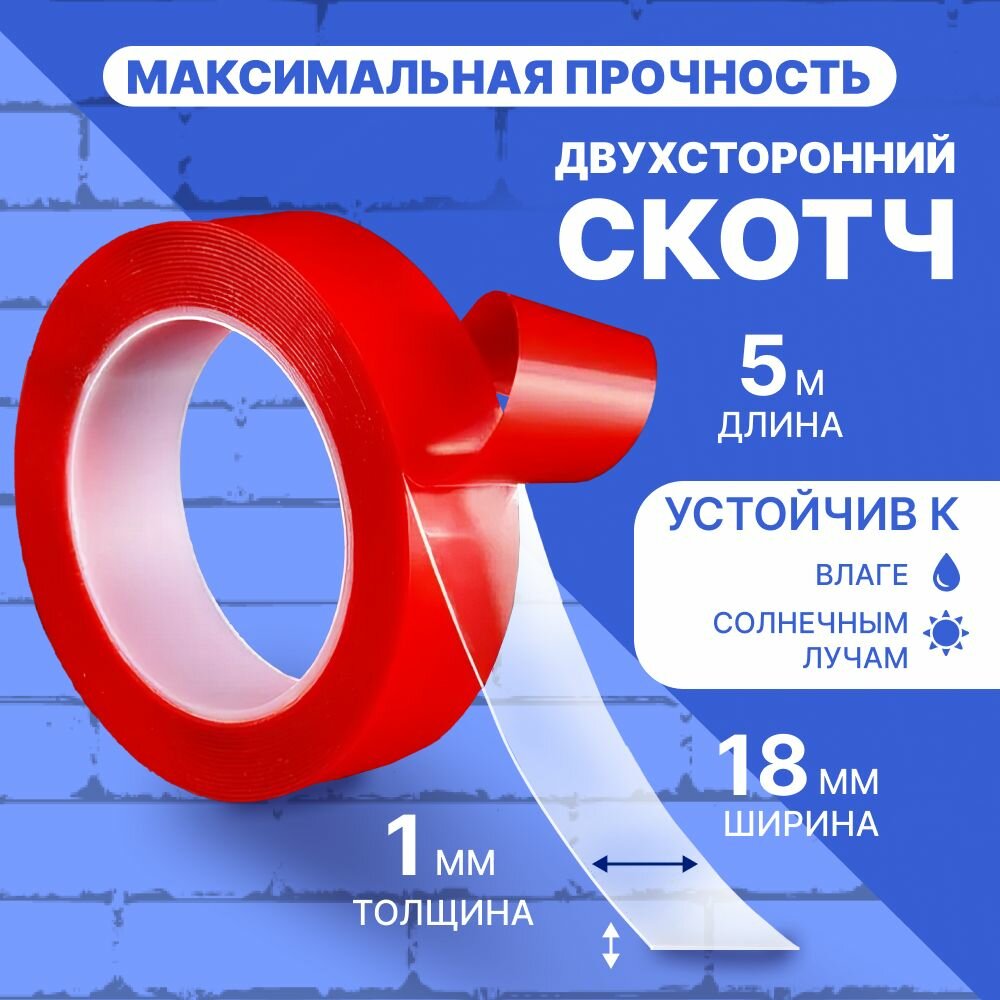 10 цен на VHB Двухсторонний прозрачный скотч 1мм*18мм*5м монтажная клейкая лента, крепежный