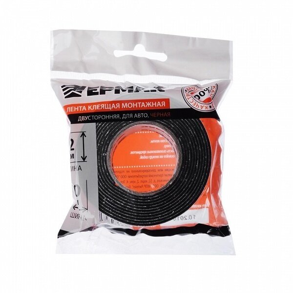 Ермак Лента клеящая монтажная 2-х сторонняя, для авто, 40мм x 2м черная 472-021 информация: