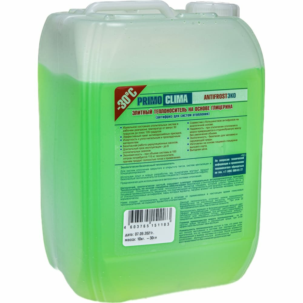 Primoclima Antifrost Теплоноситель Глицерин -30C ECO 10 кг канистра цвет зеленый PA -30C ECO 10 информация: